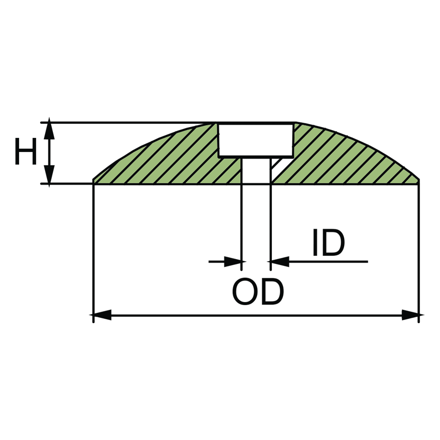 | H (Altezza mm) | OD (Ø Esterno mm) | ID (Ø Interno mm) | Materiale |