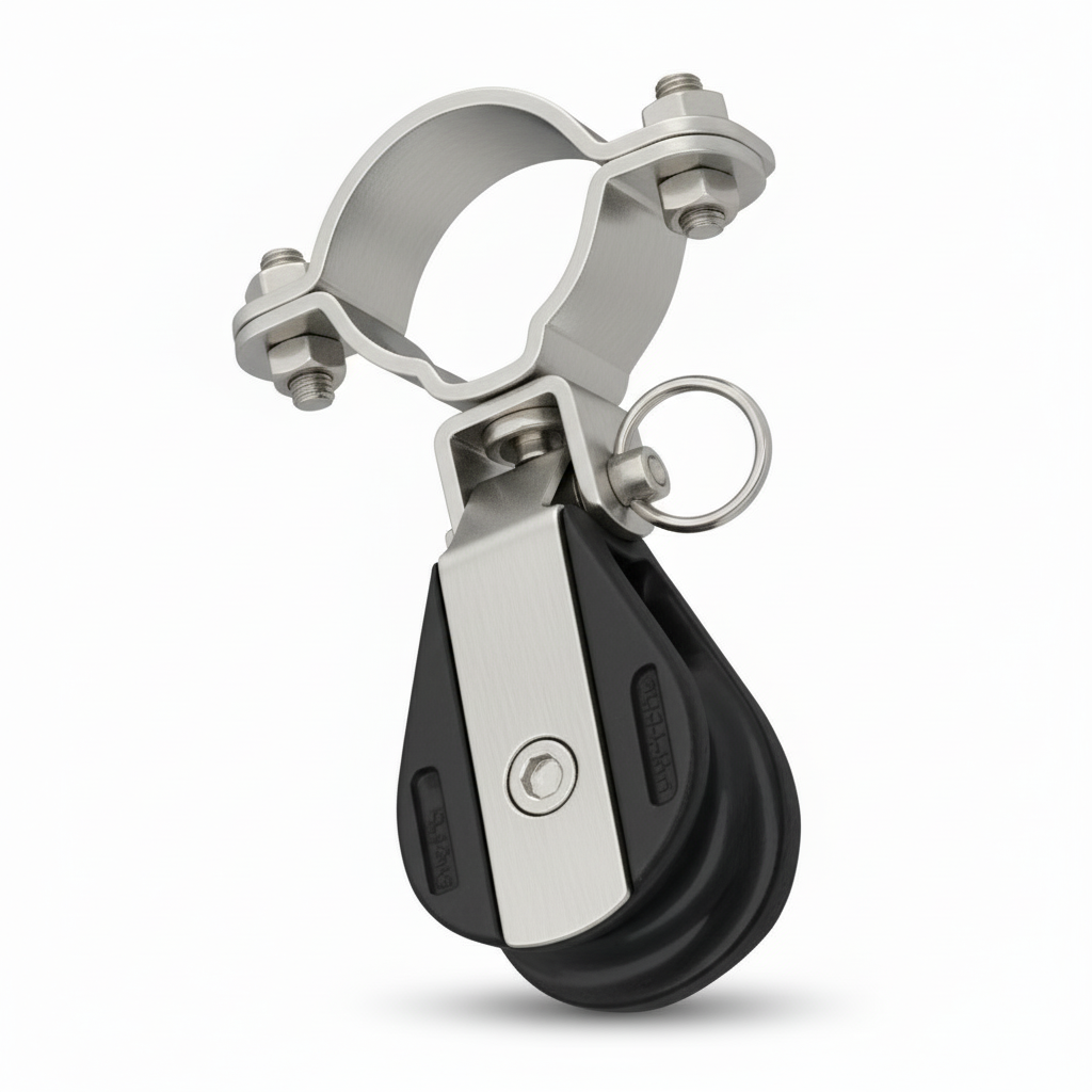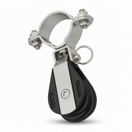 Questa serie di bozzelli è realizzata con il sistema su **sfere in Delrin**, noto per garantire un basso attrito e un'elevata efficienza, essenziale per la gestione delle manovre a bordo.