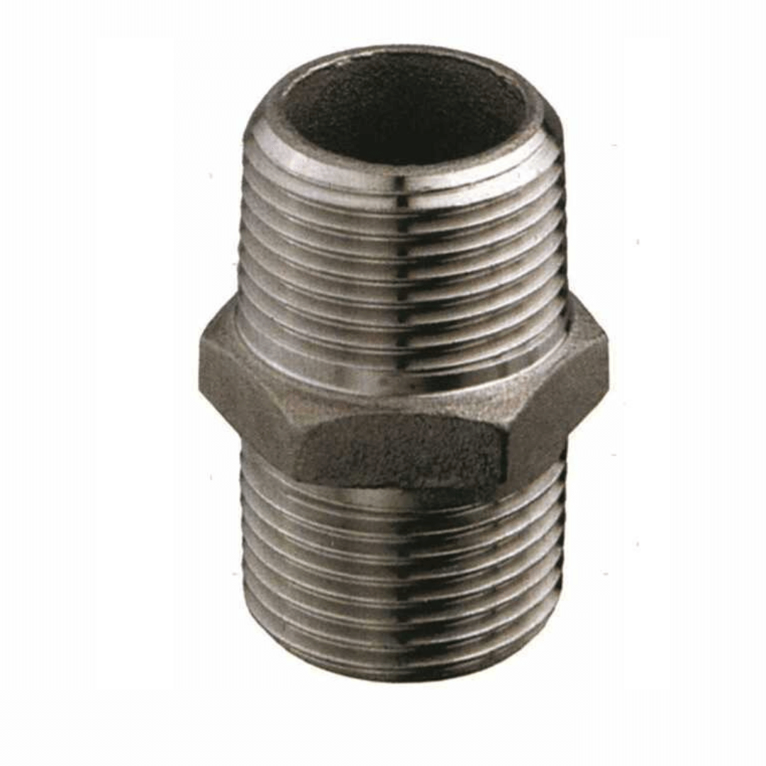 Nipple a doppia filettatura maschio (M-M) in Acciaio Inox. Essenziale per giunzioni dirette e resistente alla corrosione di bordo.