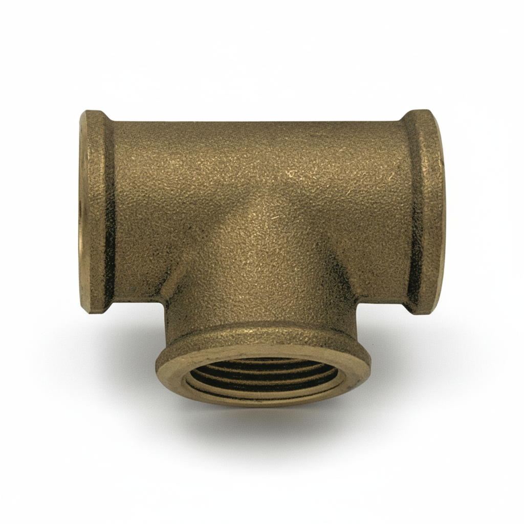 Raccordo a T in Ottone, ideale per deviare o sdoppiare una linea idraulica in tre direzioni. Componente essenziale per la costruzione di impianti idraulici resistenti alla corrosione a bordo.