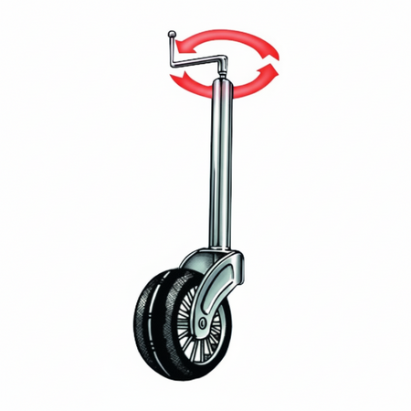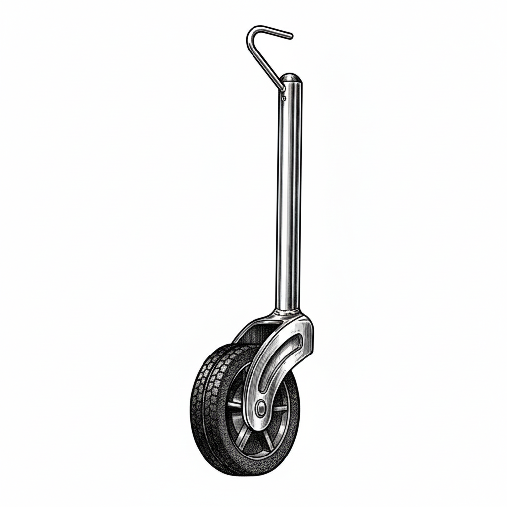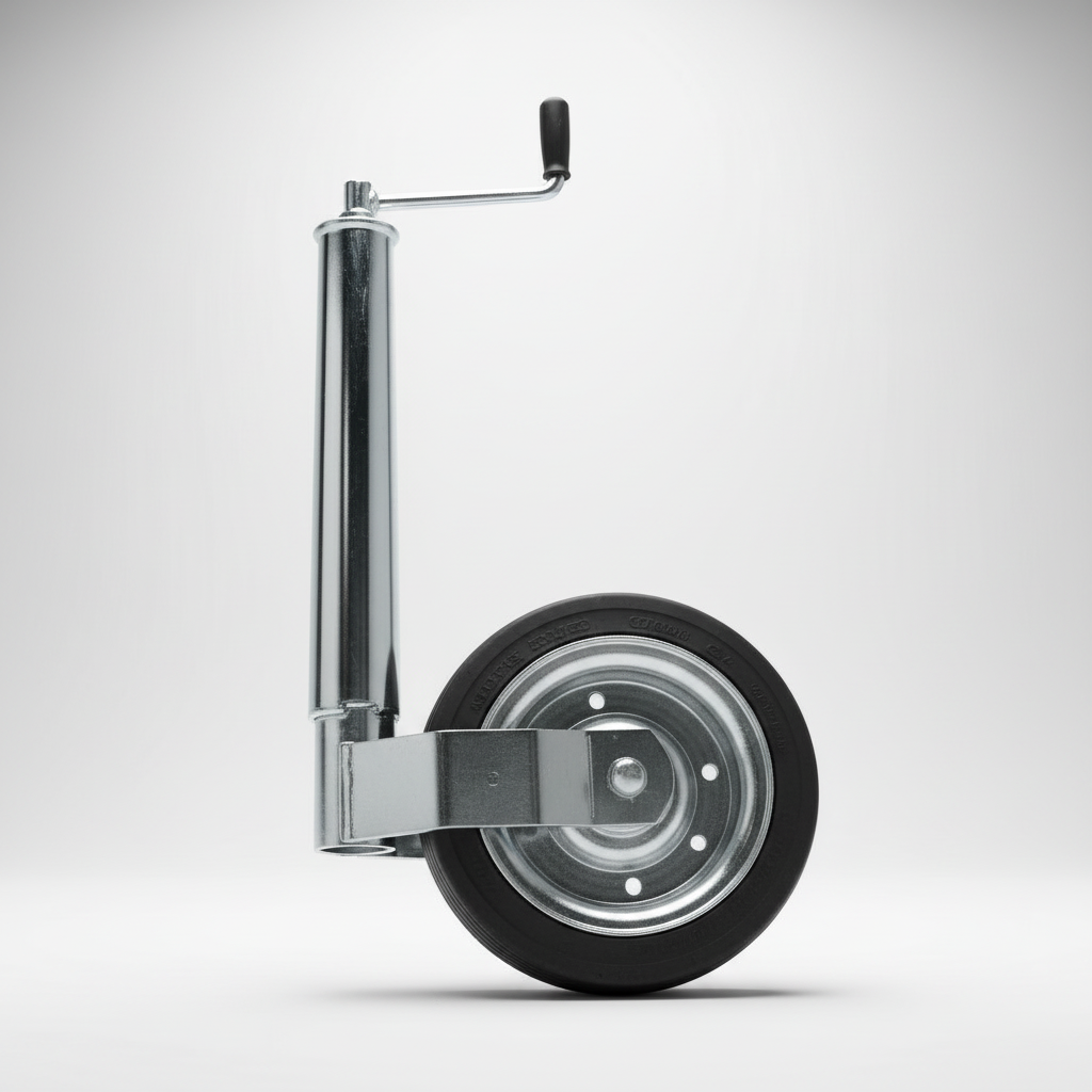 Il ruotino di appoggio anteriore (o jockey wheel) è un accessorio fondamentale per la manovrabilità e il corretto stazionamento dei carrelli porta imbarcazioni. Permette di sollevare, abbassare e spostare manualmente l'asse del rimorchio quando non è agganciato al veicolo.